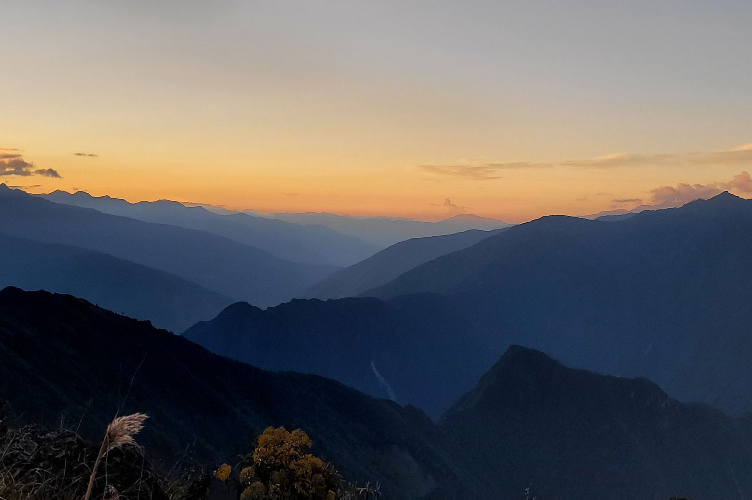After a satisfying breakfast, we depart from Pacaymayo, giving other trekkers a head start. Following the original ancient pathway, we ascend to the Runkurakay circular Inca remains, where Andean and Amazonian vegetation intertwine. Our guide will enlighten you about this fascinating place. Continuing our ascent, we reach the second pass, Runkurakay, at an altitude of 3900 m. Take your time to absorb the pristine nature and capture stunning photos. The trail leads us downhill to the Sayacmarka archaeological site, where our guide provides insights into its historical significance. From here, the trail showcases the impeccable engineering skills of the Incas as it traverses the Chaquiccocha, a dry lagoon, and passes through an Inca-adapted tunnel. Enjoy outstanding views of the snow-capped Salkantay and Pumasillo mountains in the Vilcabamba range before reaching our campsite above the clouds in Phuyupatamarka. This ceremonial center is considered of utmost importance during the Incan era.